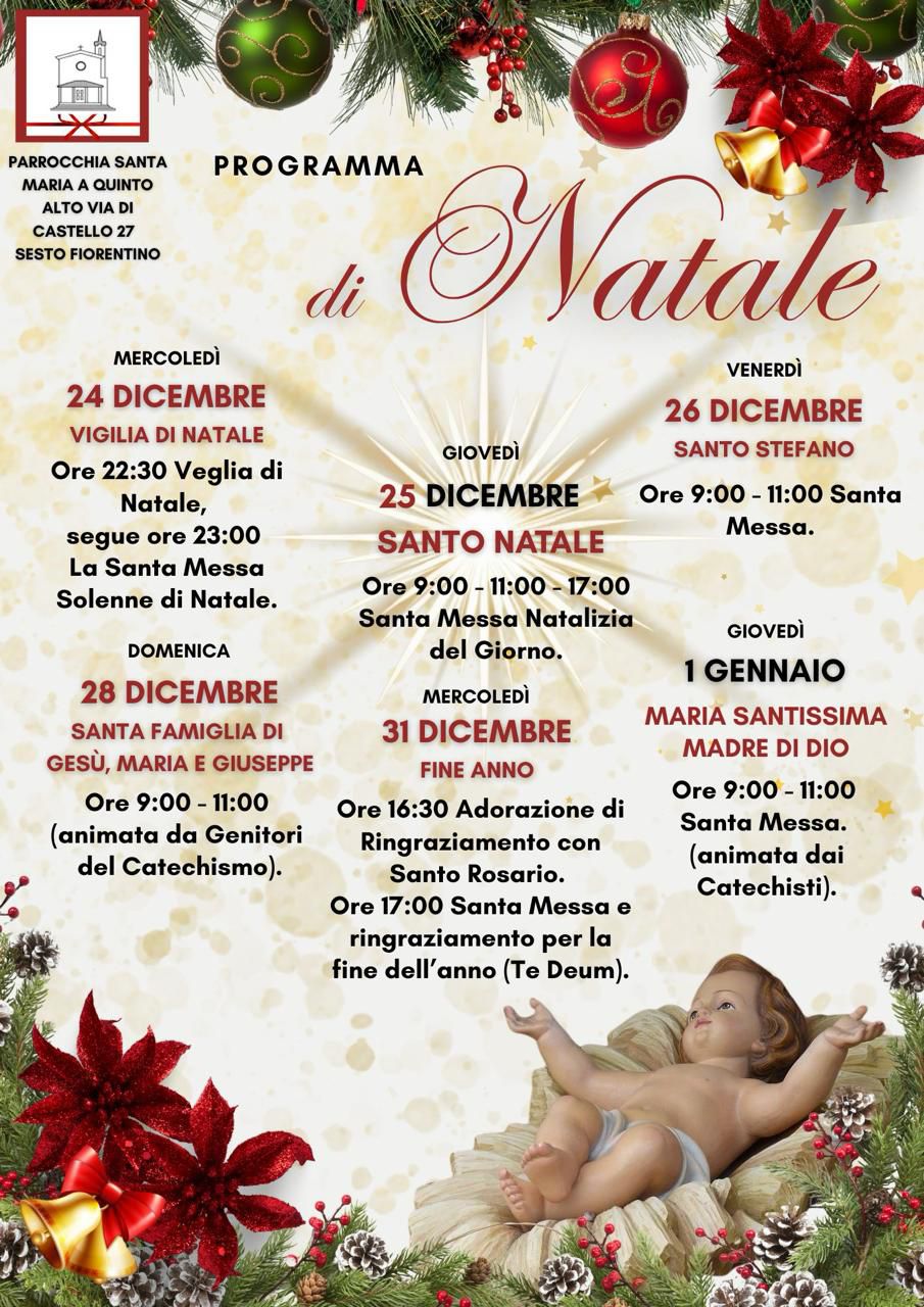 Orari delle celebrazioni per le festivita' Natalizie 2025-26